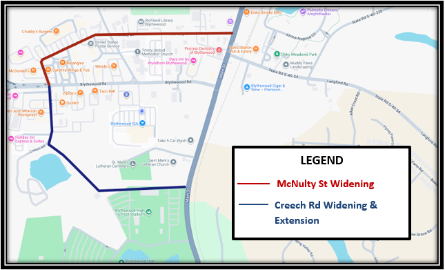 • Priority #2‐ Widen, extend and improve Creech Road from Blythewood Road to Main Street.