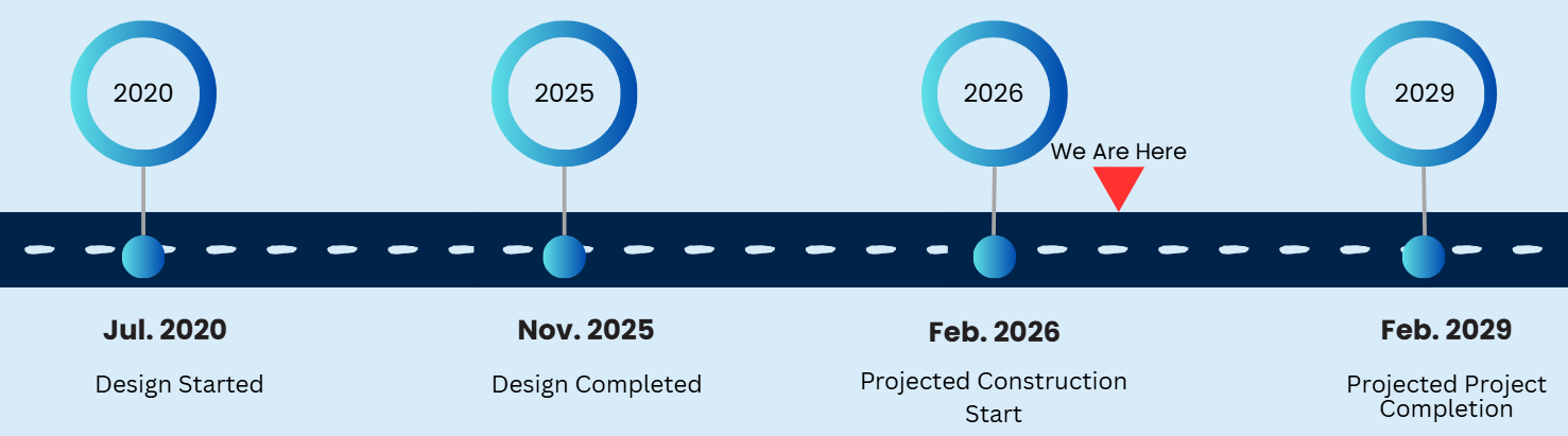 - Notice to proceed to construction was issued on February 16, 2026 with a construction completion date of February 16, 2029.
