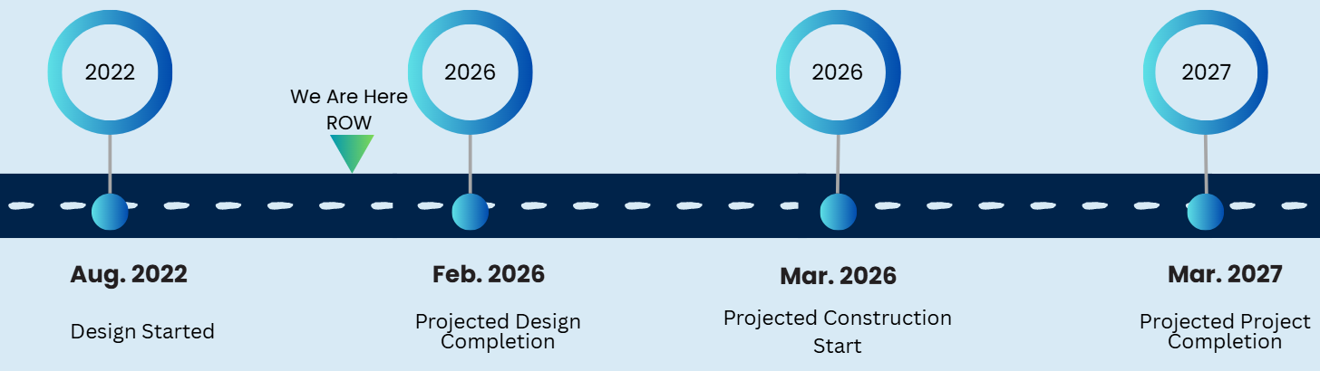 - ATP for ROW issued by SCDOT on 8/12/25. Final roadway, hydro, bridge, and geotechnical design are ongoing. Stormwater appurtenances are being reviewed against potential utility conflicts to minimize and/or avoid conflicts. ROW plans are being reviewed by the utility coordination team to identify conflicts. Permissions, initial contact and title work is complete. Waiting on signed ROW plans before their review to determine if a new preliminary engineering agreement is needed.