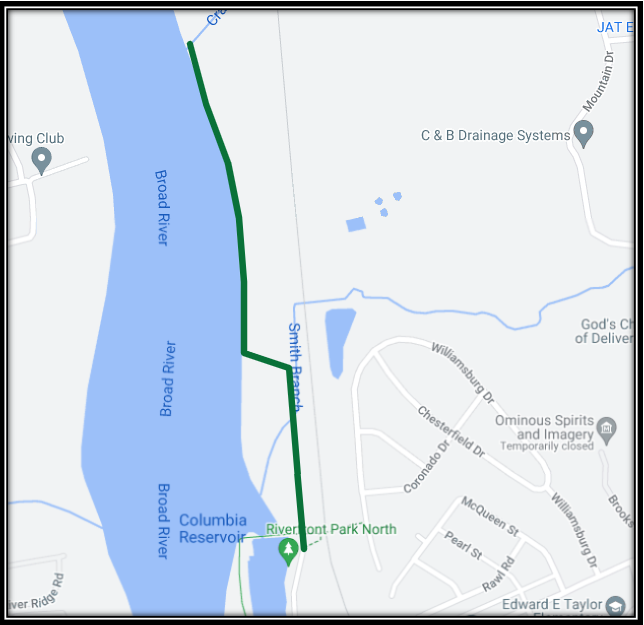 Project scope is to design a recreational greenway from the Columbia canal diversion dam (headgates) extending north along the west side of the Broad River across Smith Branch, then turn toward the edge of Broad River and continue north along the rivers edge crossing over Crane Creek and terminating just north of Crane Creek. Design a bridge across Smith Branch to carry City of Columbia specified vehicles and pedestrian crossing over Crane Creek.