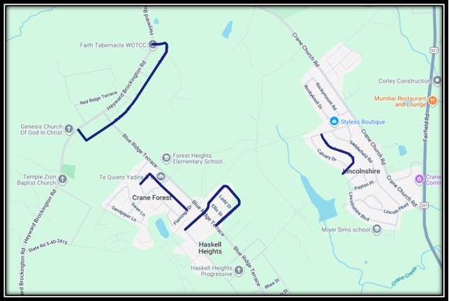 The scope of this project was determined in Phase 1 (concept phase) and was selected directly from the approved Richland County Neighborhood Master Plan and refined based public and stakeholder input and available funding. The project will be further broken down into two phases. Phase 2 will include (1) new sidewalk and streetscape improvements along Blue Ridge Terrace, Heyward Brockington Road, and Crane Church Road; and (2) streetscape improvements along Monticello Road. Phase 3 will include new sidewalks along Dakota Drive, Seagull Lane, Roberson Street, and Lincolnshire North Drive.